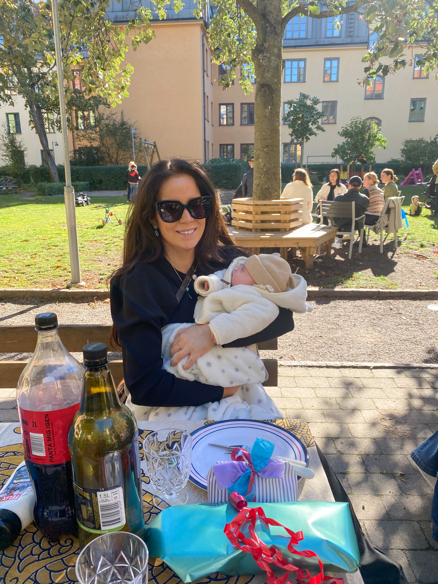 Idag har vi varit ute heeeela dagen. Solen har strålat hela dagen och det ville vi ta vara på. Vi hade nämligen en picknick inbokat tillsammans med Livias familjevänner med familj och det var så passande med tanke på vädret. Vi åkte iväg till Aspudden tidigt i förmiddags för att först hälsa på Livias moster. Dem har ännu inte träffat Leonard och det var så himla fint första möte. Både mostern och döttrarna ville såklart hålla och mysa med honom. Jag är så glad över att vår son har såna fina människor runt omkring sig. Framåt lunch promenerade vi till picknicken och på vägen hoppade vi spontant in i en italiensk delikatessbutik för att köpa ost till kvällens mys. Att strosa runt i Aspudden är ju så fantastiskt mysigt. Husen är så vackra och jag älskar att höra alla historier om platserna omkring då Livia är uppväxt där.