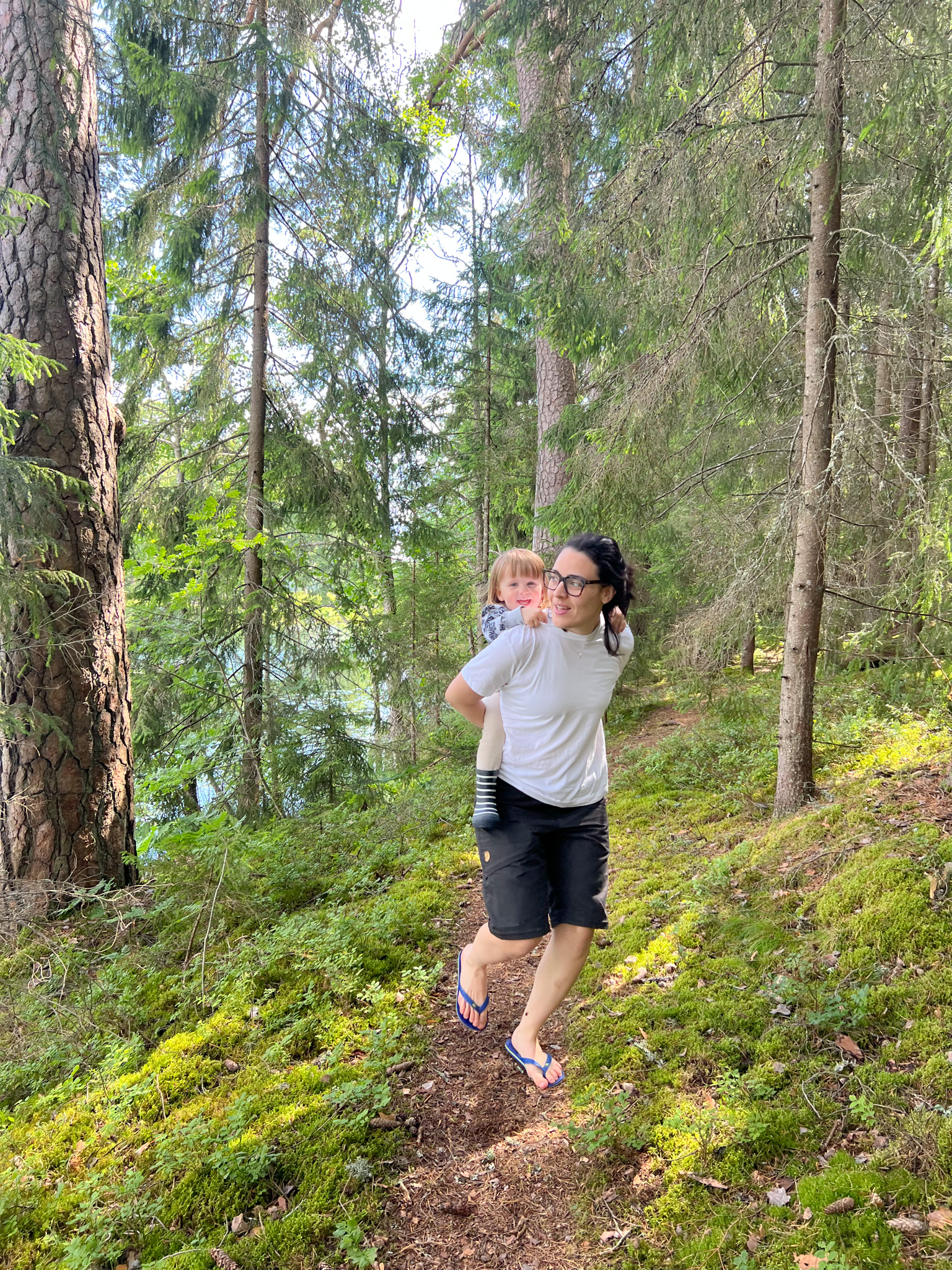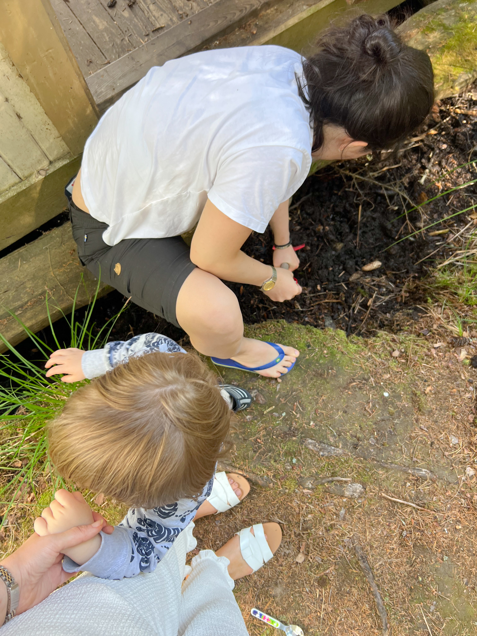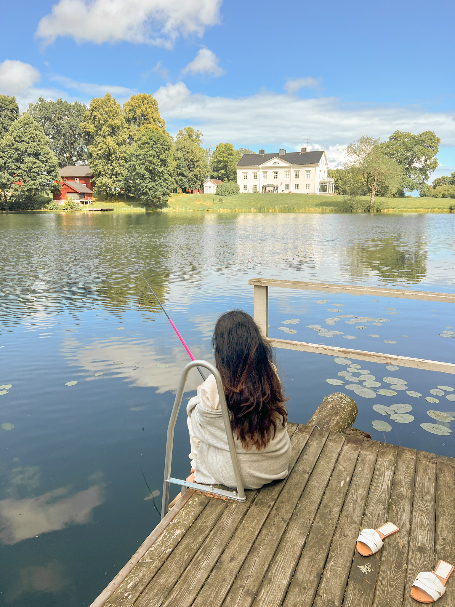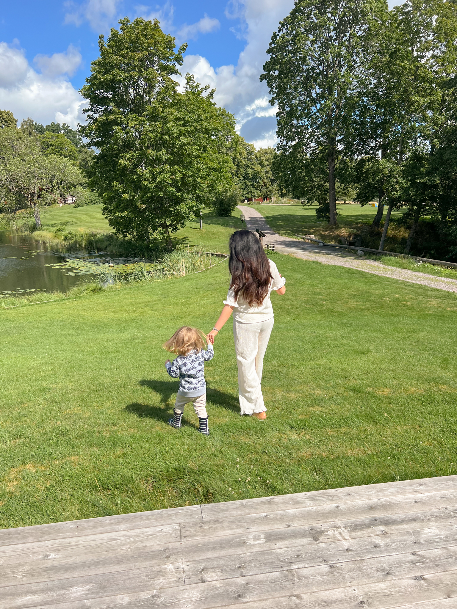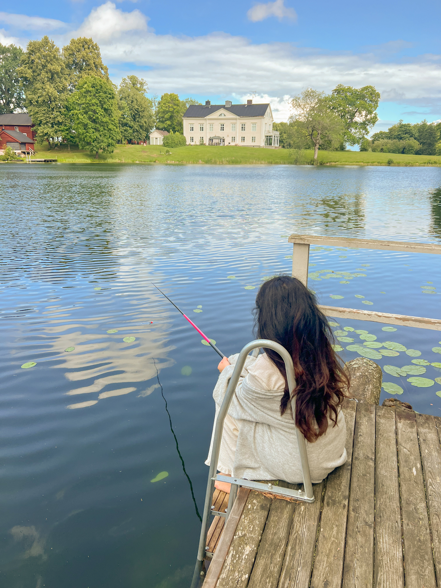 Vi testade bland annat på att fiska ute på bryggan. Det var så mysigt och jag kastades genast tillbaka till min barndom då vi fiskade mycket. Jag kan inte minnas sist jag metade faktiskt… Jag har så svårt för att skada djur så jag hade till och med svårt att fånga mask. Jag klarade inte av att ha ihjäl en mask för att sedan sätta på kroken. Livia förberedde allt och när metspöt var i vattnet tog jag över. Jag fick napp, men fisken tappade greppet när jag skulle ta upp spöet. Jag hade såklart ändå inte klarat av att ha ihjäl fisken… Men stunden var mysig! Leonard var mycket fascinerad över maskarna. Resten av dagen så promenerade vi, kikade på och jagade fjärilar, åt massa jordgubbar och bara myste.