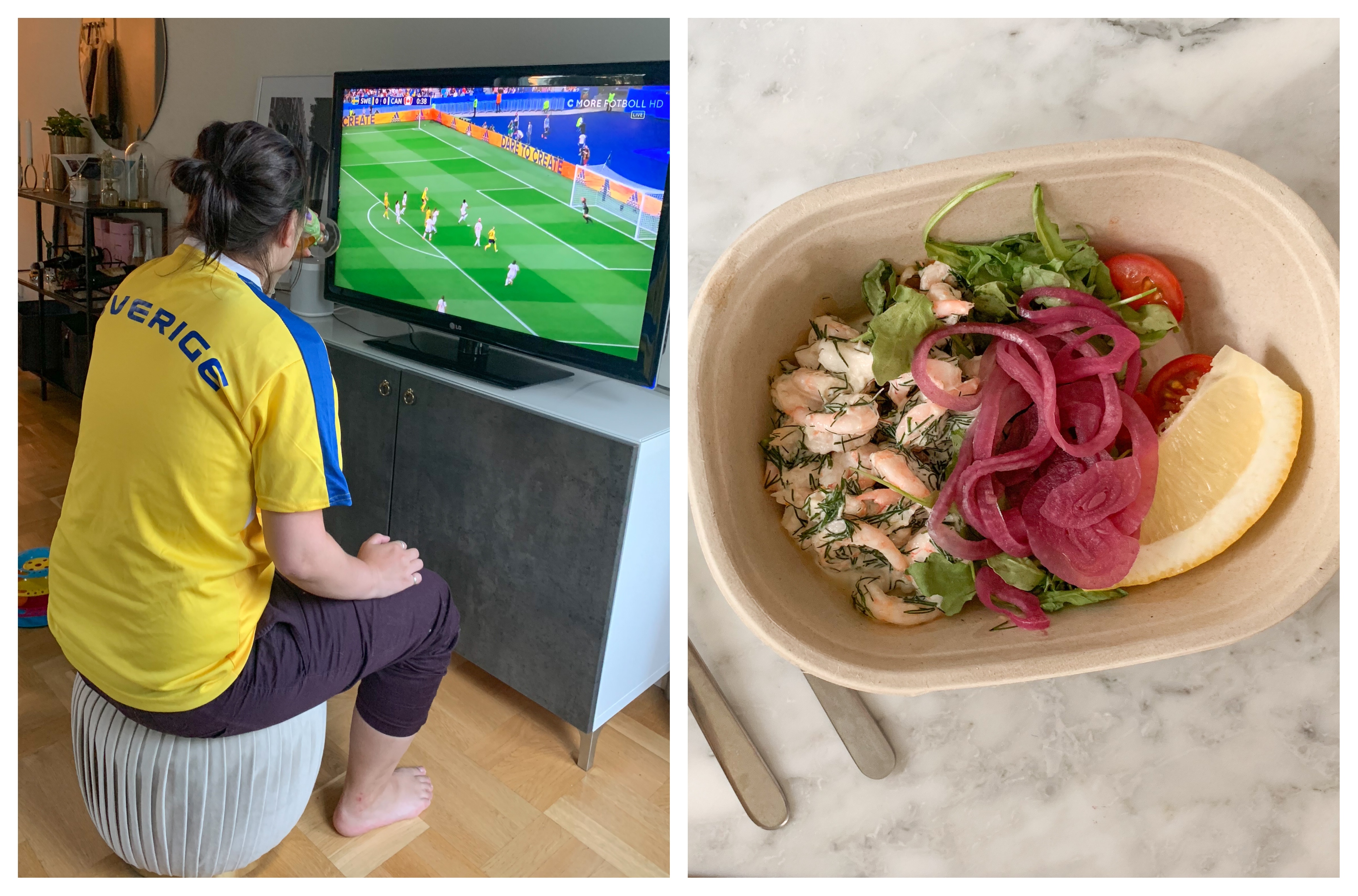 Älskling kollar fotboll och jag äter en god räkröra. Båda fick vi våra favoriter hehe