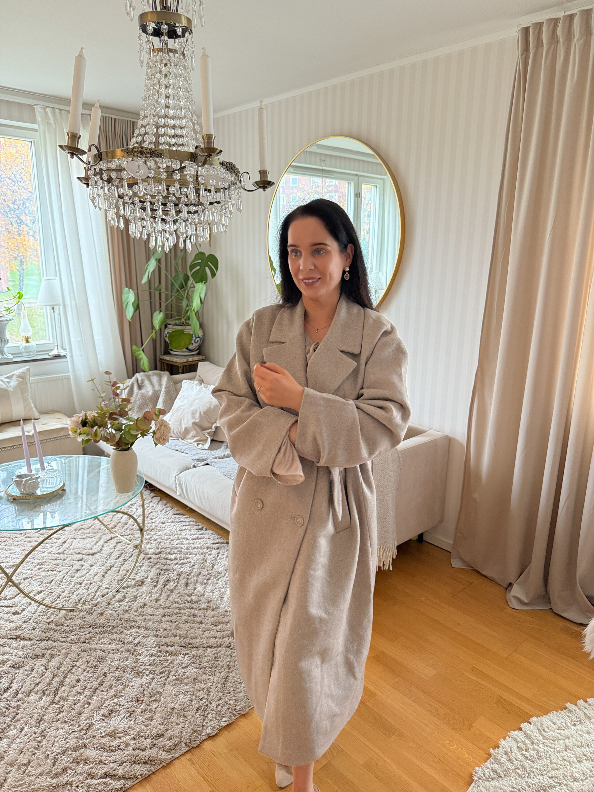Världens finast höst och vinterkappa. Jag har storlek 38 i min. Stor i storleken. Den levereras med en matchande scarf
