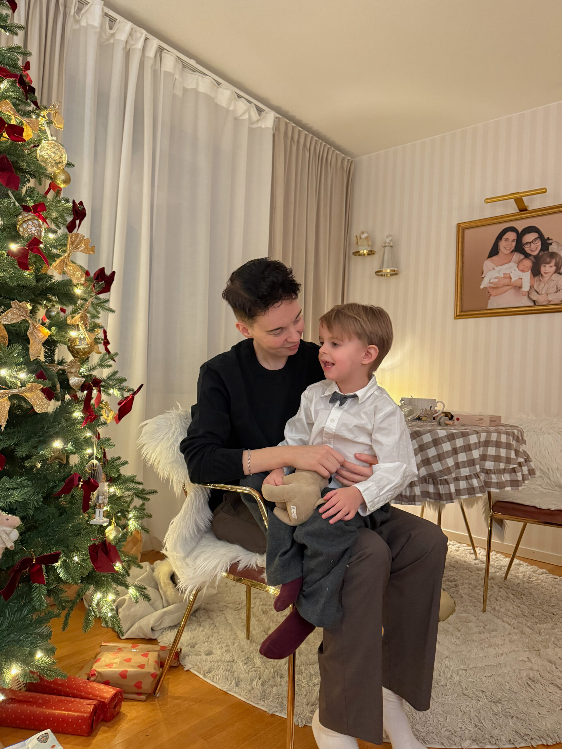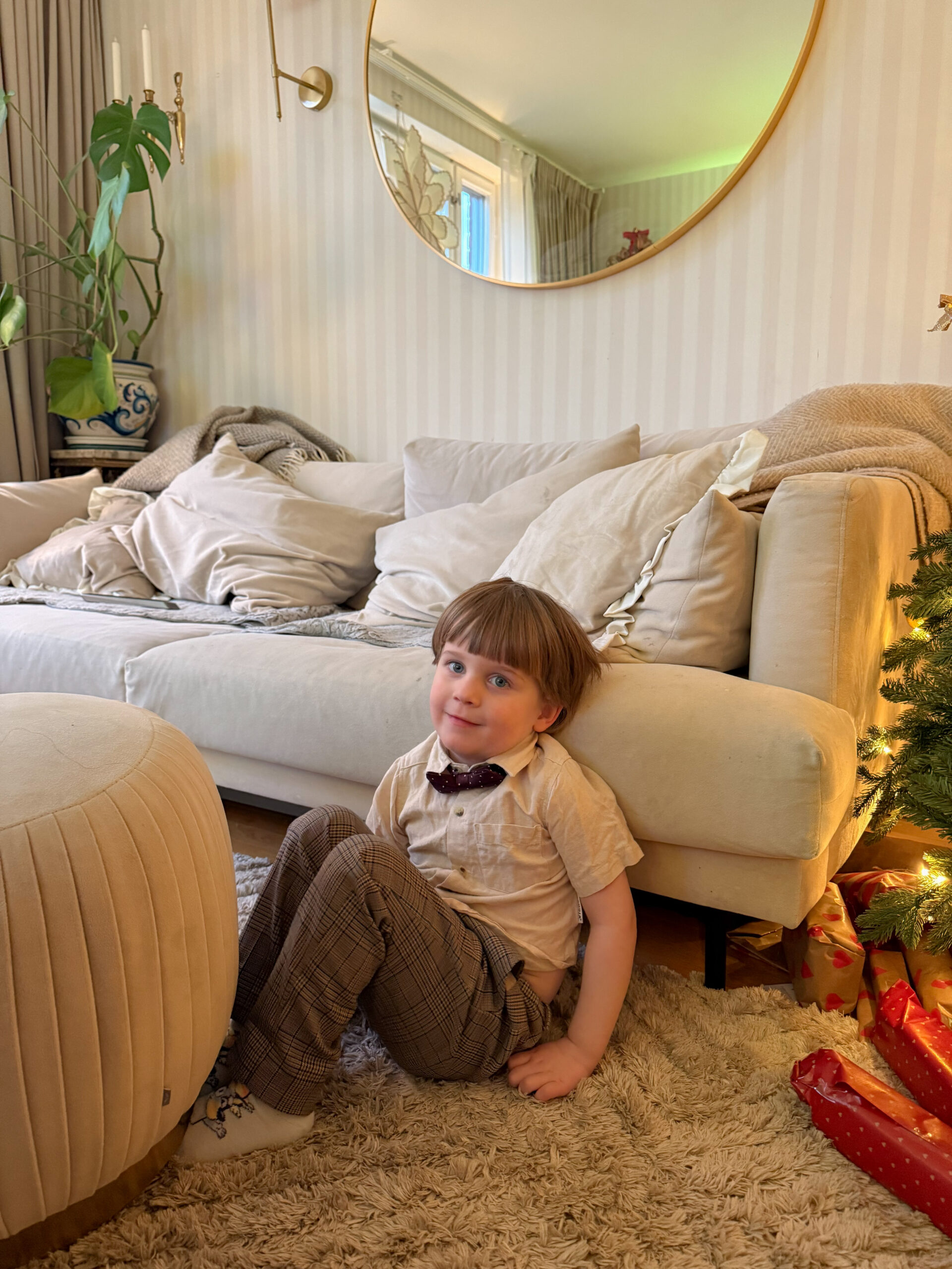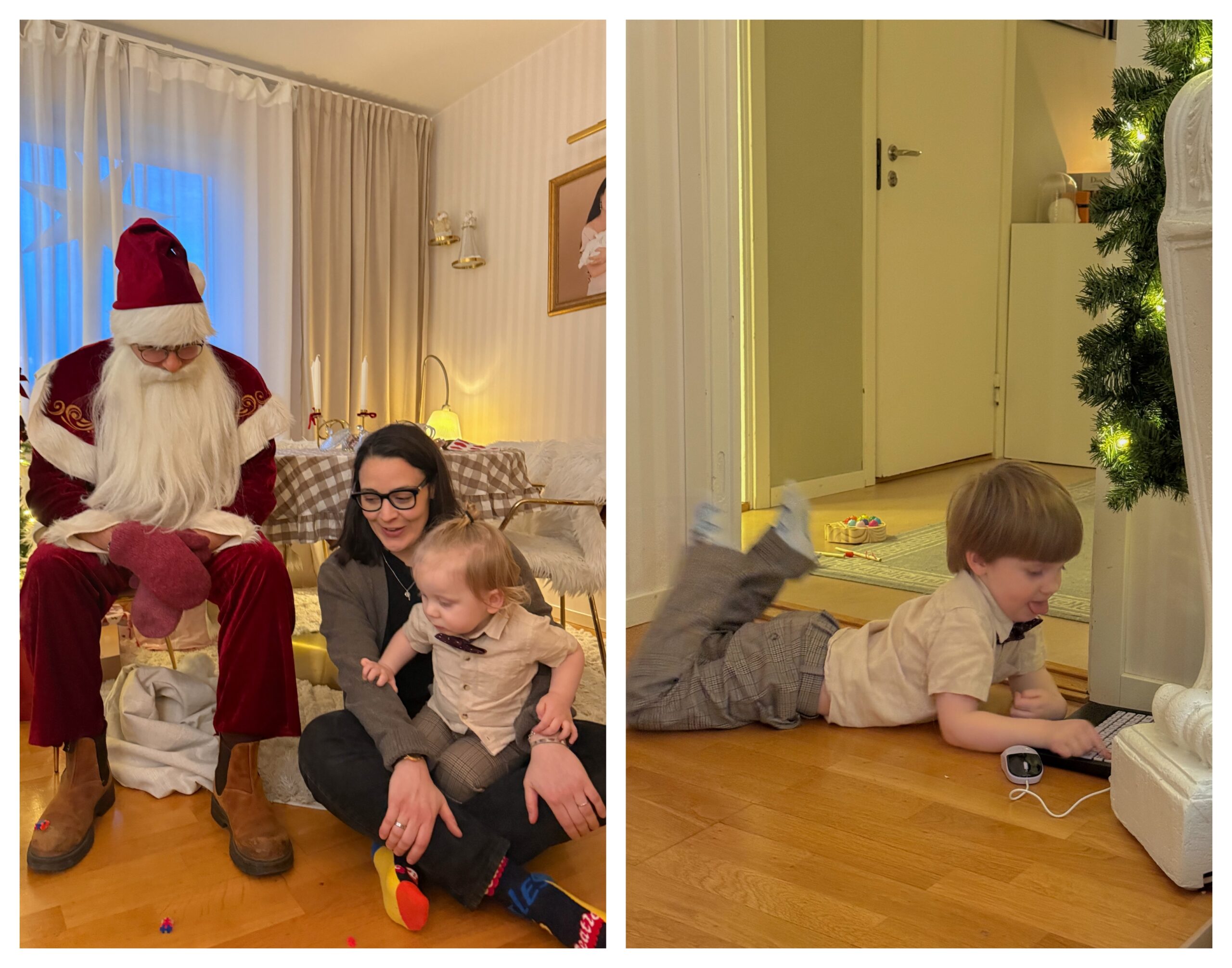 Jag hyrde även in en tomte för att överraska barnen och de blev ju succé. Tomten var så bra och himla trevlig. Leonard sa när han hade gått ”mamma, detta var ju den riktiga tomten, inte någon gubbe som var utklädd”. Bra betyg ändå!