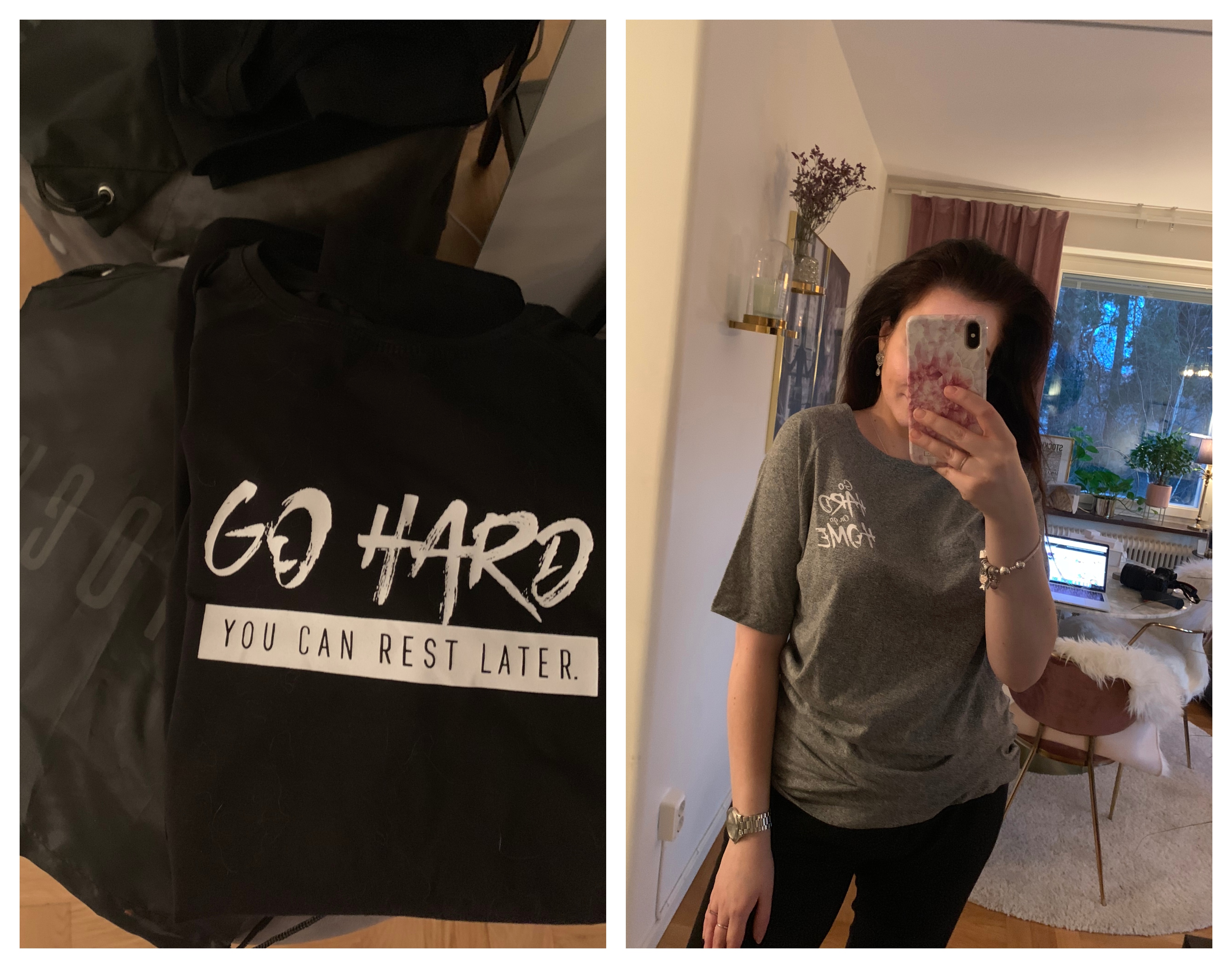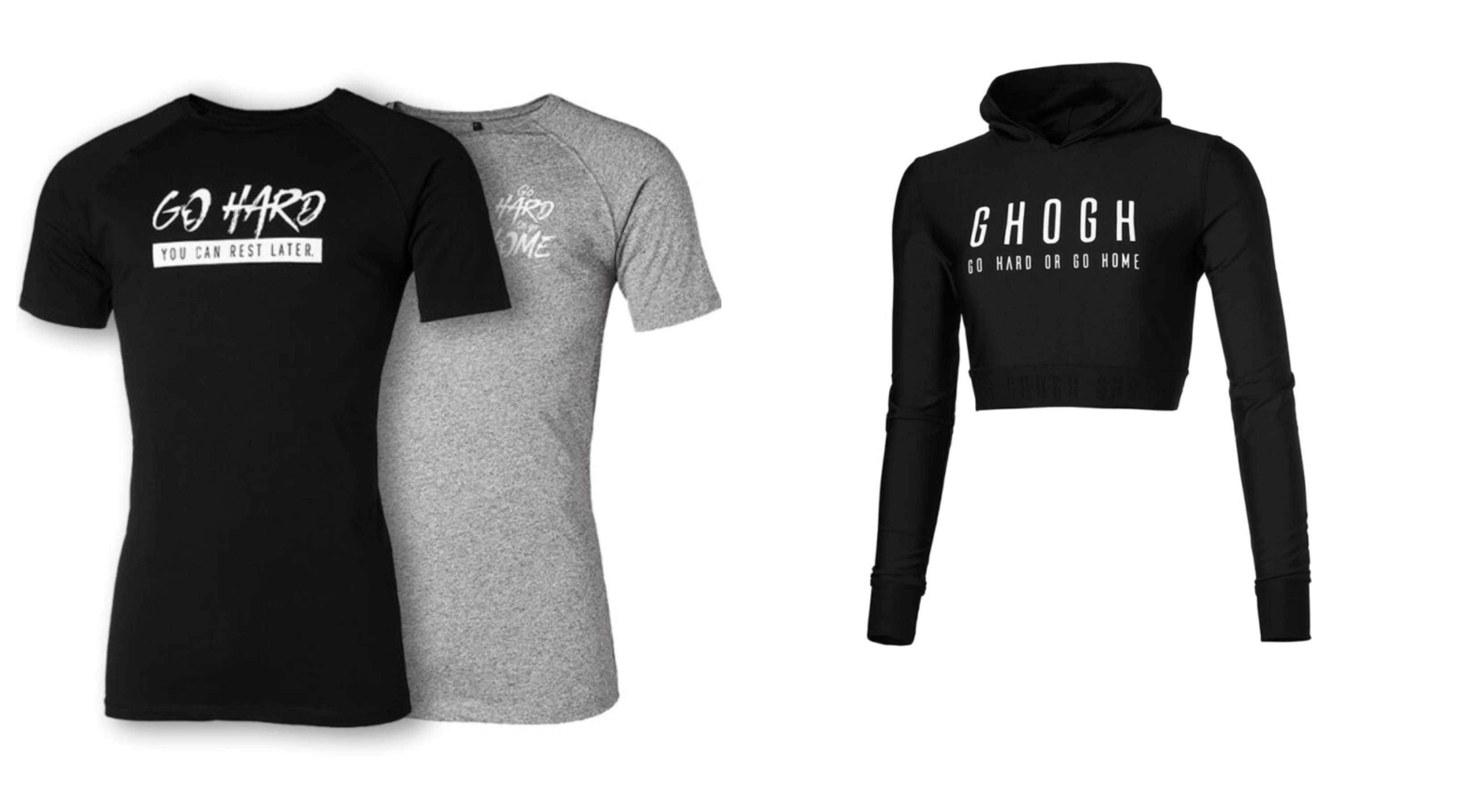 Hur som helst älskar jag att träna i snygga kläder och i matchande sets. Det är så viktigt för mig att jag känner mig bekväm. Jag motiveras helt enkelt att träna i snygga outfits, passande för gym 🙂 Skulle aldrig gå ut på en powerwalk eller gå till gymmet i solkiga träningskläder. Skulle heller aldrig visa upp mig på gymmet i kläder som jag använder i andra sammanhang. På gymmet ska man ha ”gym kläder” och inget annat. Med fina träningskläder blir ju träningen så mycket roligare. Håller ni inte med mig? Jag blir i alla fall så mycket mer inspirerad till att gå och träna i fina och bekväma kläder. Mina senaste tränings outfits kommer ifrån GHOGH som står för ”go hard or go home”. Älskar detta citat för det är ju exakt så jag är som person. Jobbar jag så jobbar jag, tränar jag så tränar jag. Och jag gör varje aktivitet till 100%.