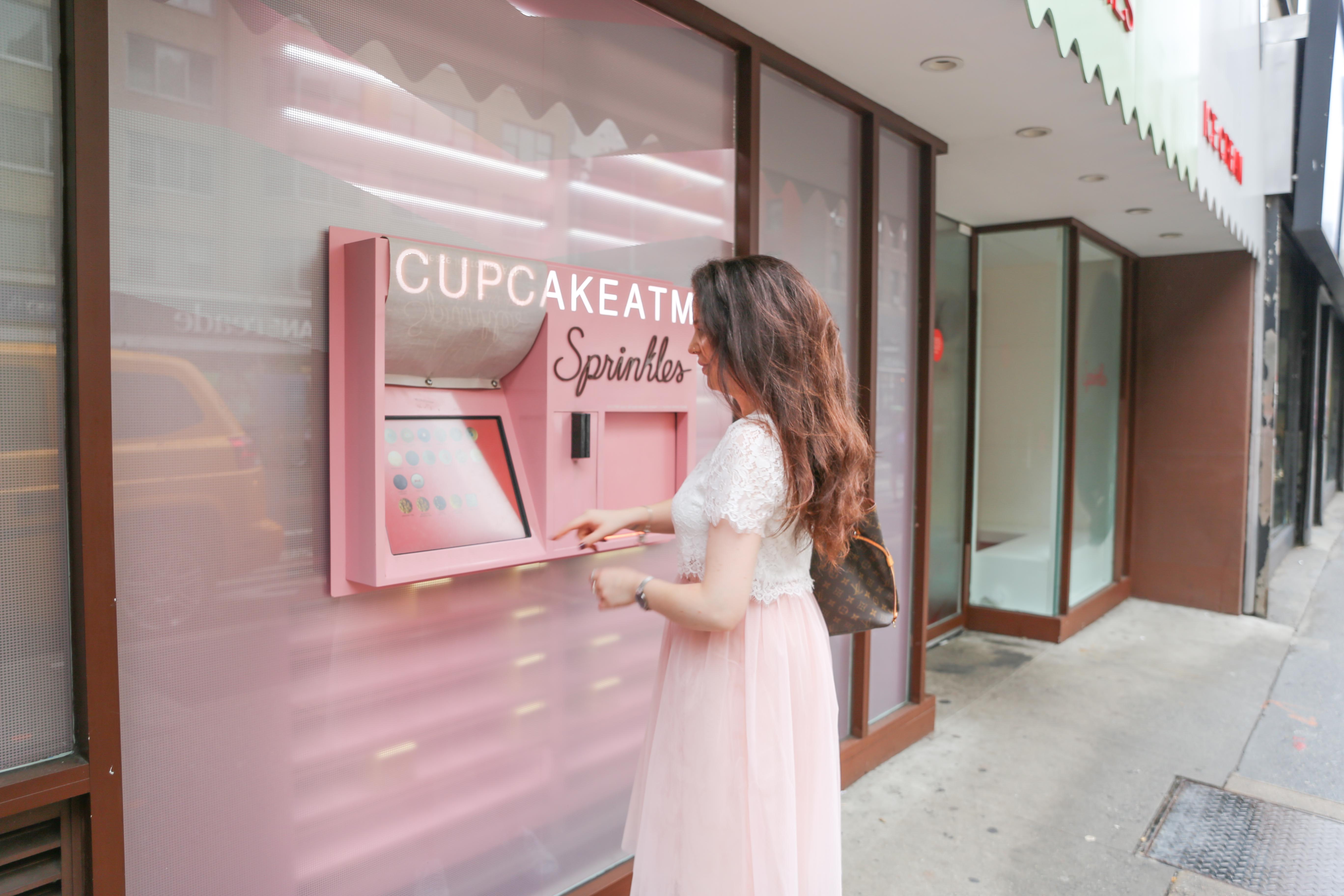 Om / när ni är i New York måste ni gå förbi Sprinkles Atm. Vart hittar man då dessa söta atm’s som jag skulle vilja kalla dem bästa ”uttagsautomater”. Det finns tre stycken i New York, men den sötaste och mest centrala hittar ni i Midtown, Manhattan på adress: 780 Lexington Ave, New York, NY 10065