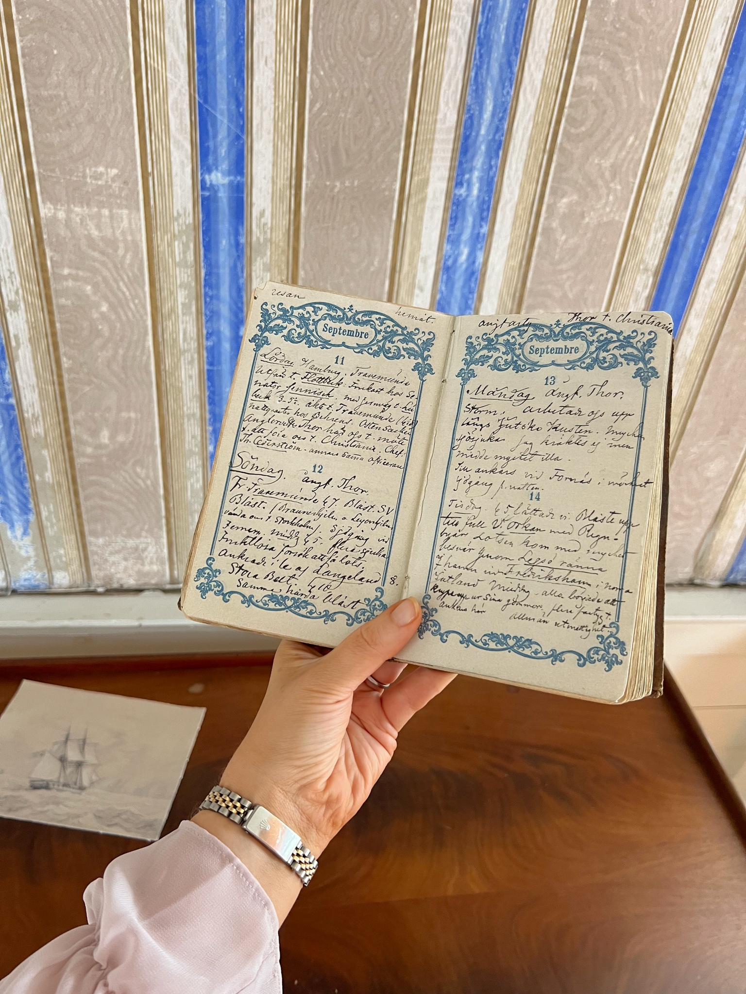 Hittade en dagbok i orginal från 1800-talet. Troligen någon i Bernadotte familejn som skrivit i den.