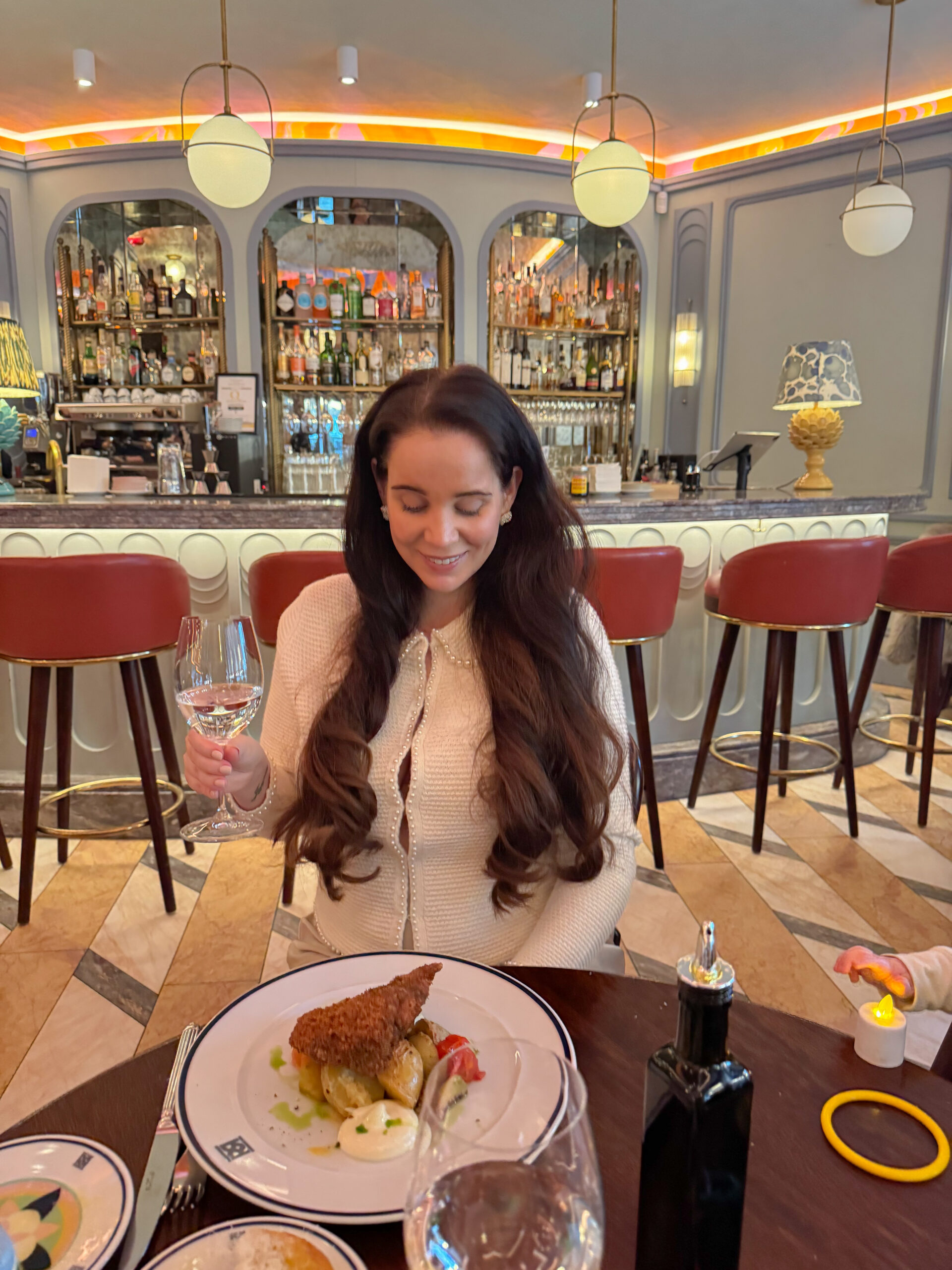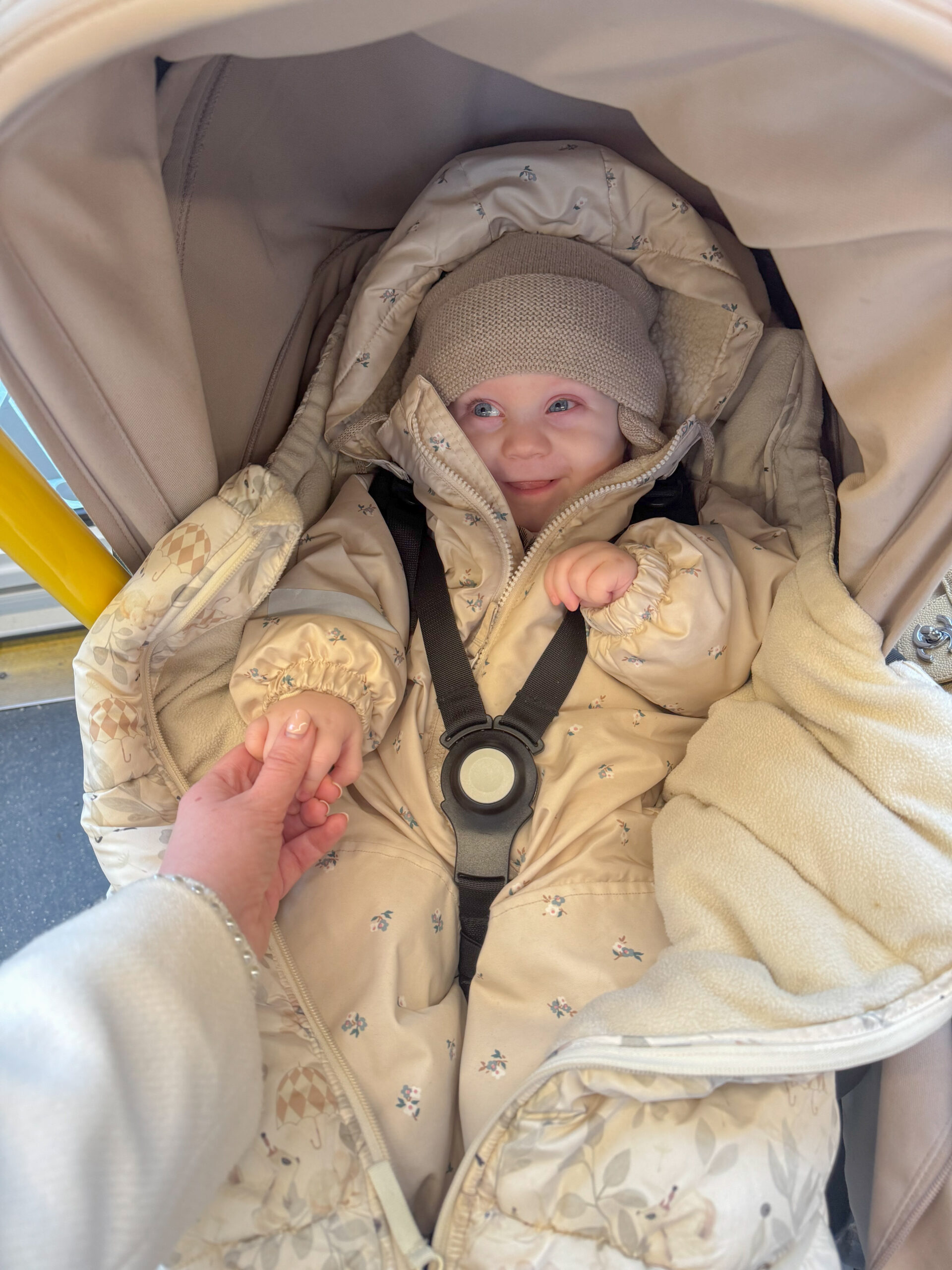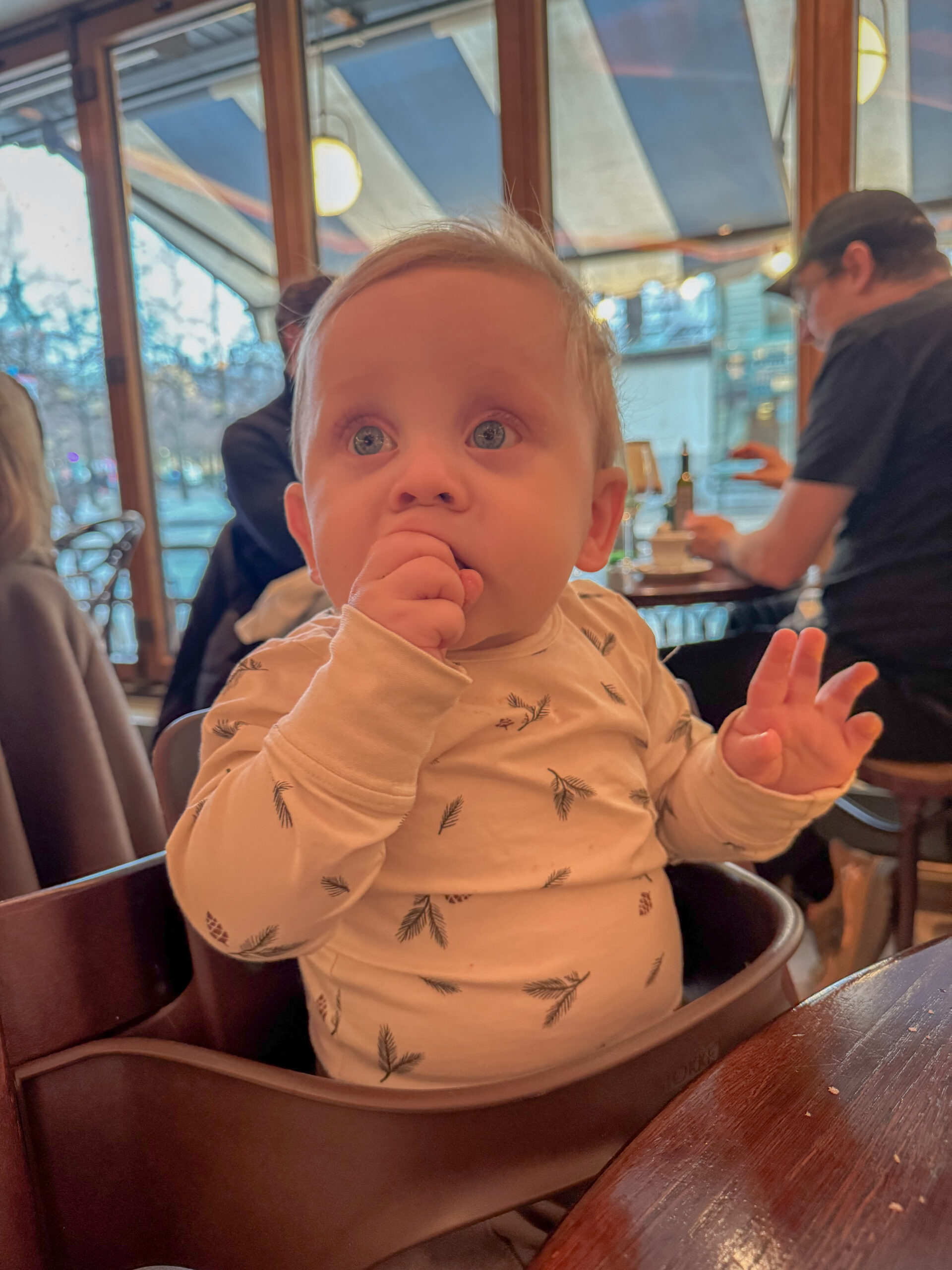 Jag valde deras krispiga kyckling med parmesanpotatis, och det var helt magiskt gott! Perfekt krispig yta, saftigt kött och potatisen… den var så smakrik och härligt ostig. Livia var också supernöjd med sin lunch, och lilla B satt glatt i sin bebisstol och myste.