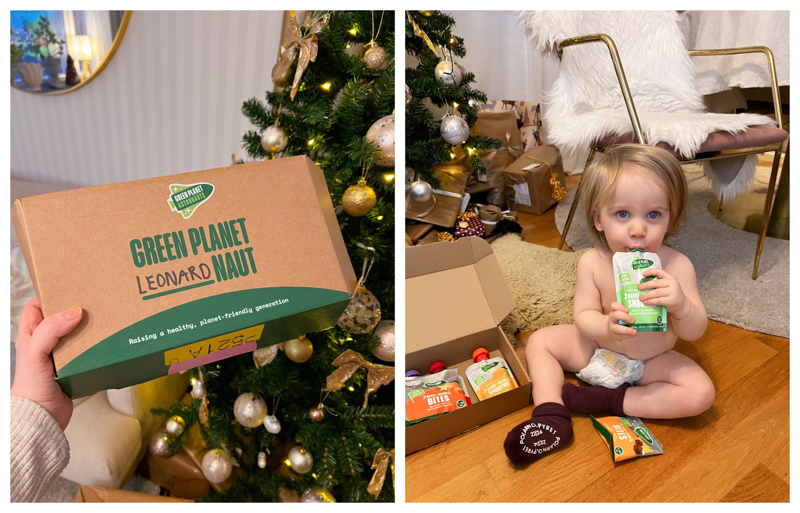 Leonard fick julkapp från bästa Green Planet astronauts. Fantastisk ekologisk barnmat och snacks. Det tackar vi för.