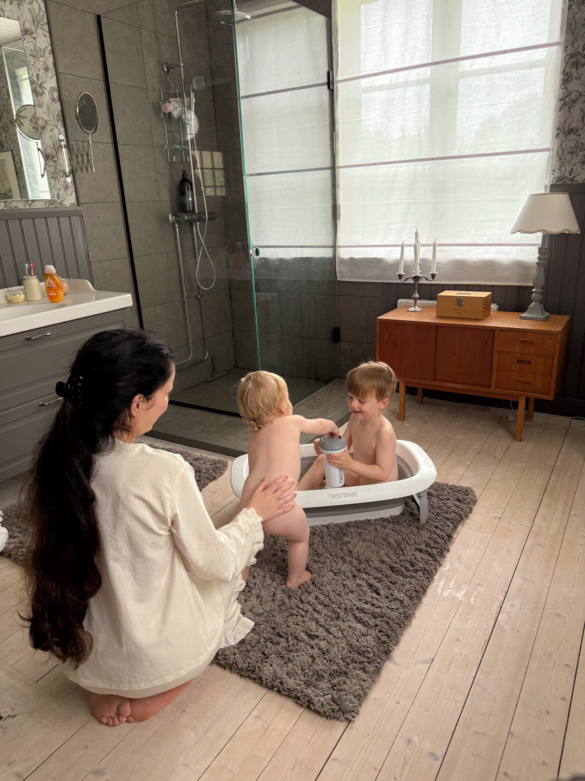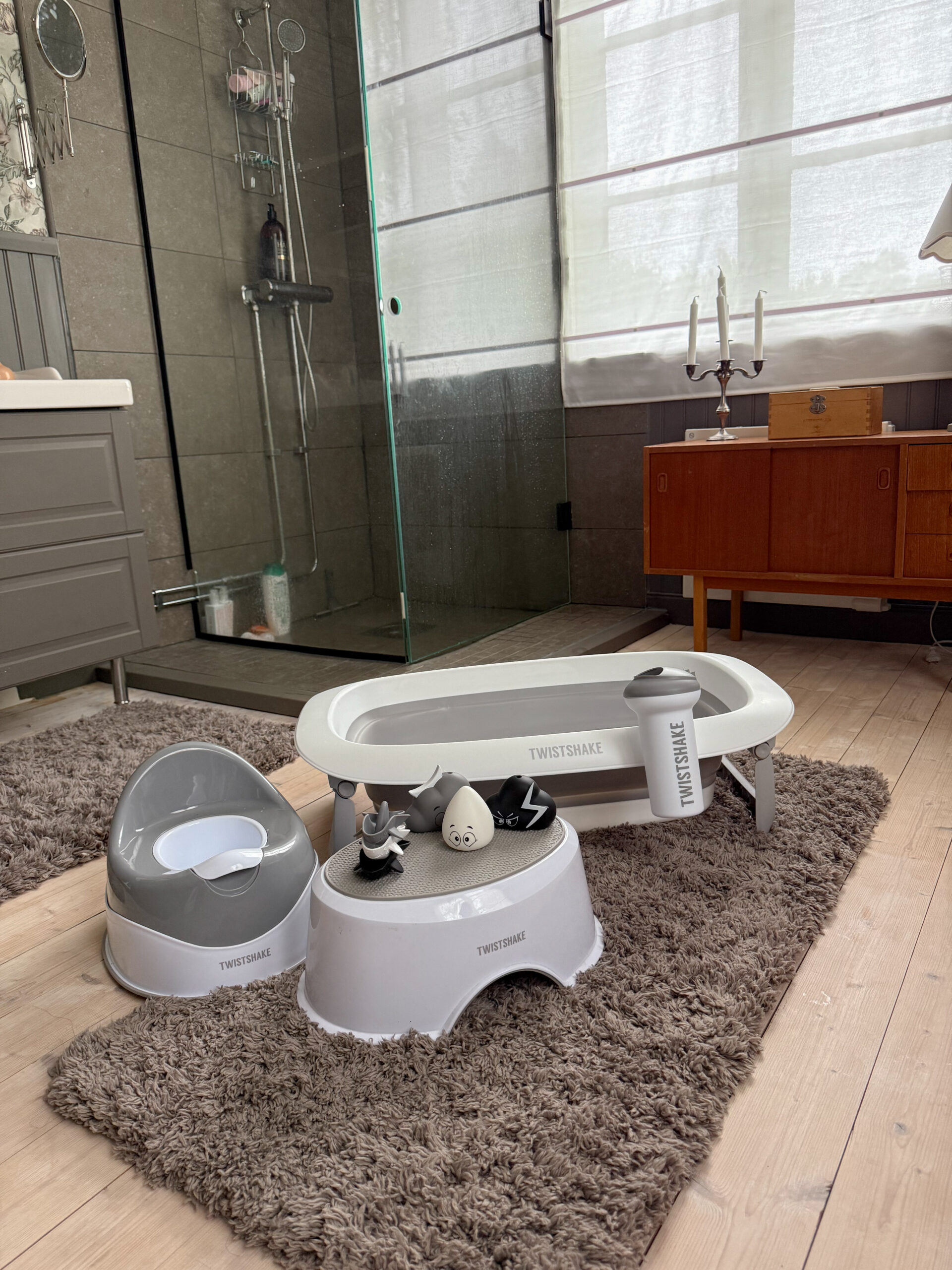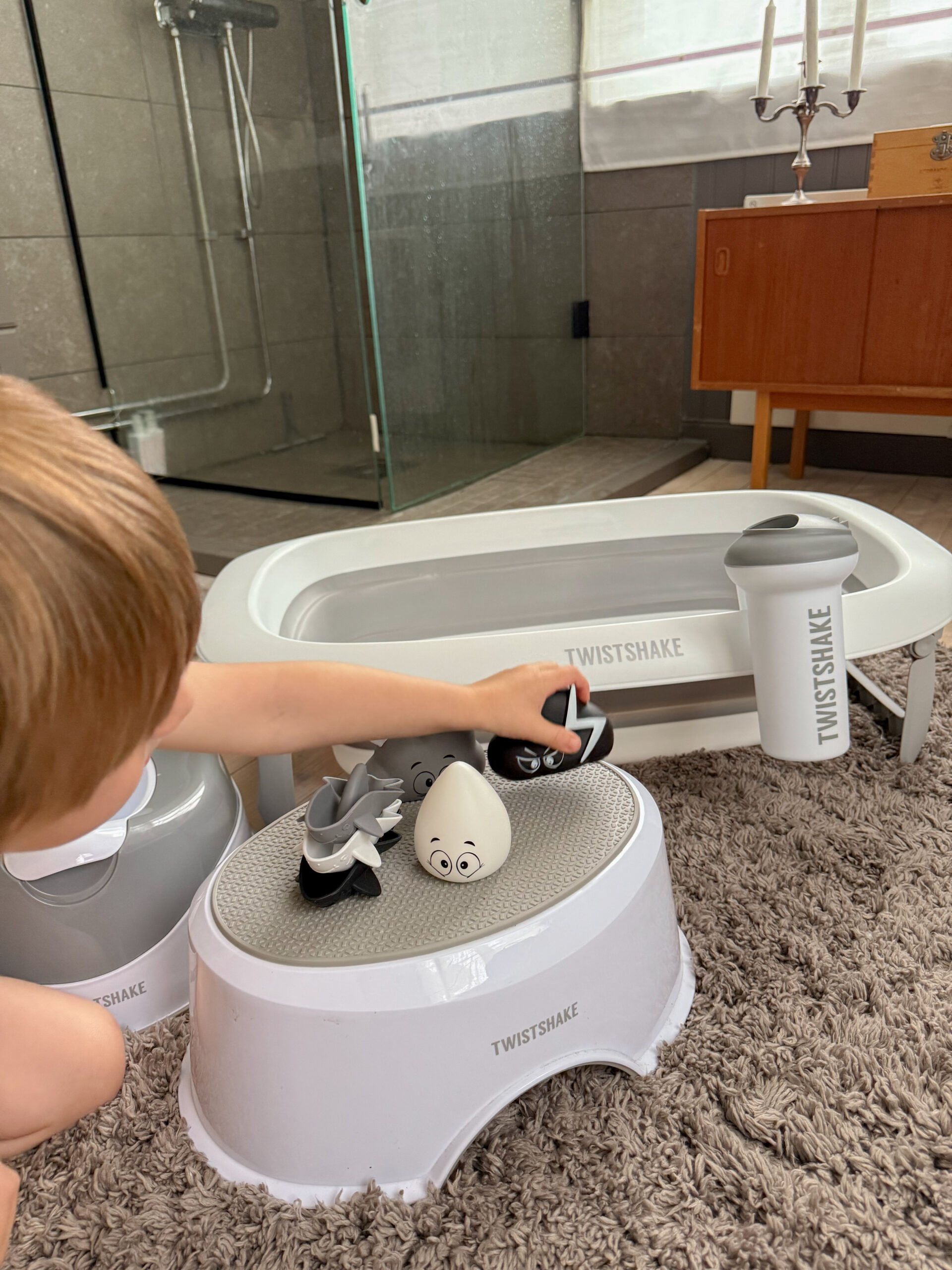 En av våra absolut största favoriter när det kommer till bad och tillbehör är Twistshakes badkarskollektion. Badkaret är verkligen genialiskt ultrakompakt och går att fälla ihop till bara 10 cm. Perfekt när man, som vi, inte vill ha ett stort badkar ståendes framme hela tiden. Trots att det är smidigt att gömma undan är det superstabilt, med halkfri design som gör det tryggt även när barnen plaskar lite extra. Dessutom älskar jag hur enkelt det är att tömma utan att det blir kladdigt och blött överallt för ett rent och snyggt badrum är alltid en bonus!
