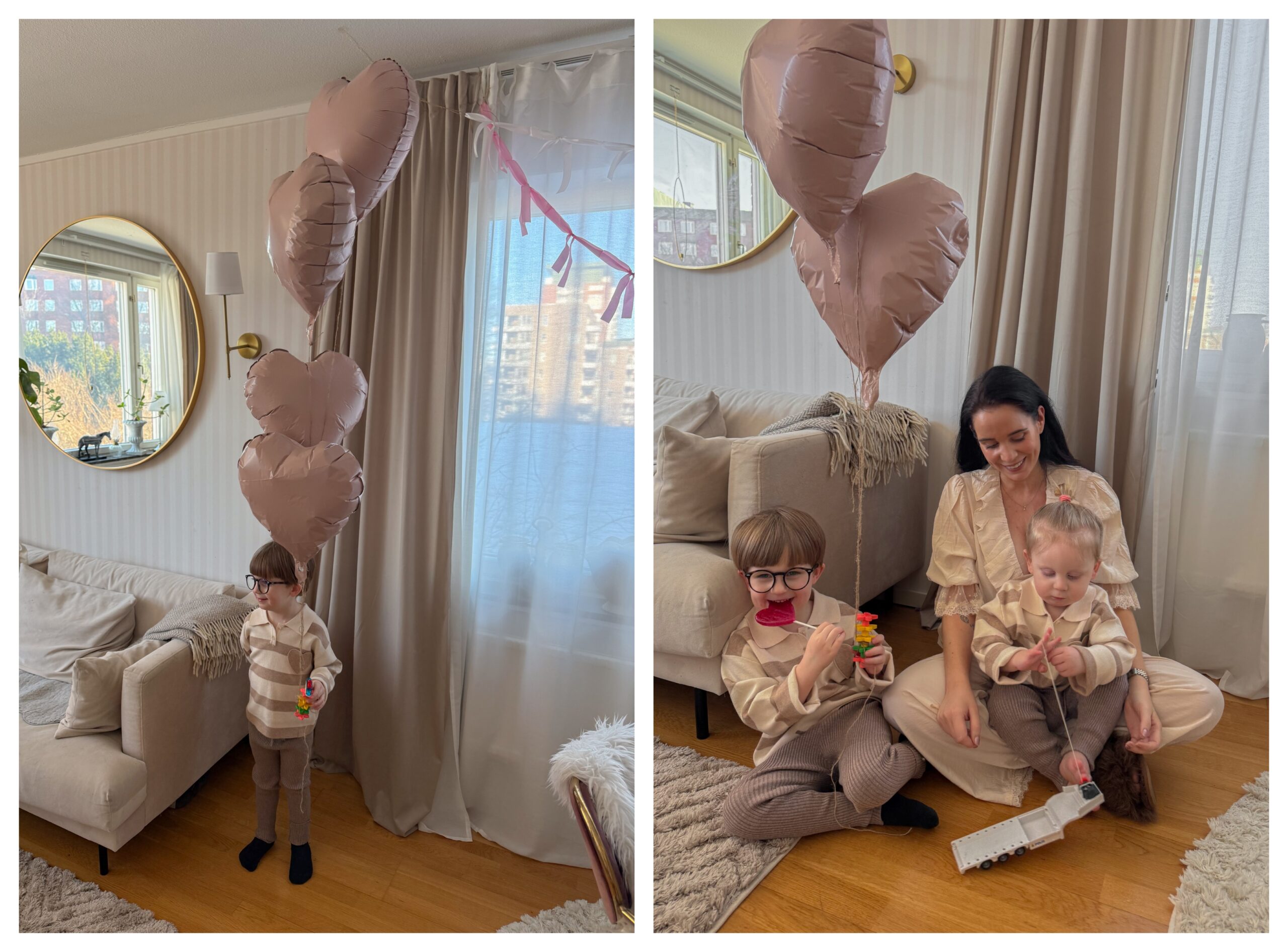 I morse fick jag sova en stund medans resten av familjen stod i köket och lagade en så fin brunch till mig. Livia och Leonard hade planerat att överraska mig och det gjorde dem verkligen. Jag och B låg kvar i sängen medans dessa två var på ica och handlade så mycket gottis, blommor och ett fint kort till mig. Jag blev verkligen överraskad. Det är verkligen något speciellt med alla hjärtans dag ändå. Jag och Leonard har dekorerat i vardagsrummet med heliumballonger, girlanger av rosetter och lite konfetti. Vi vill ju fira allt som går att firas. Efter frukosten fick jag ta en ensam promenad i den iskalla kylan, men det var sol. Det var så skönt att få komma ut när det är SOL.