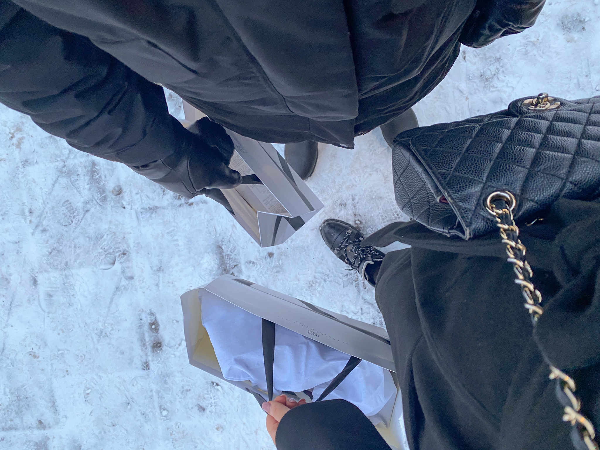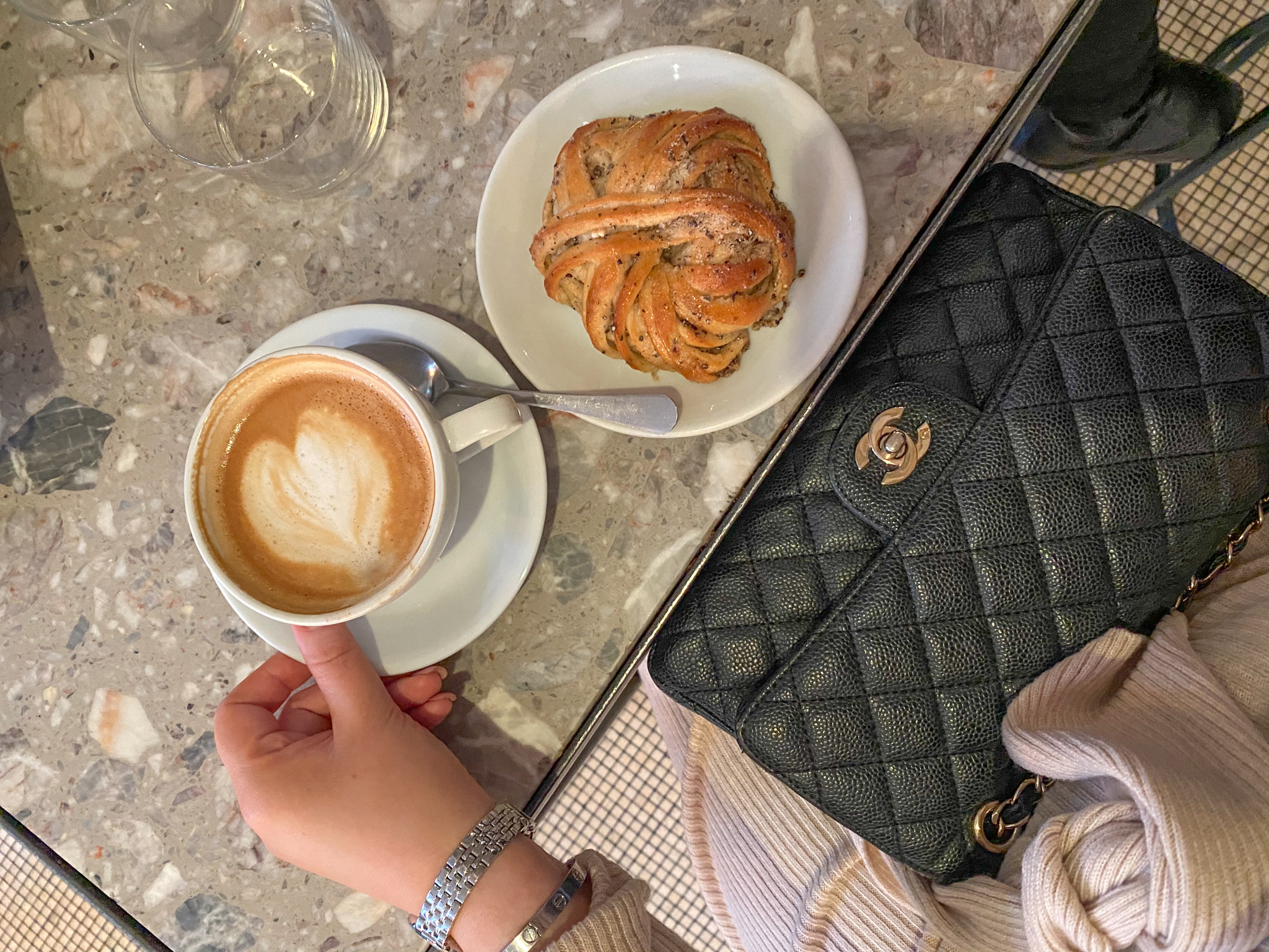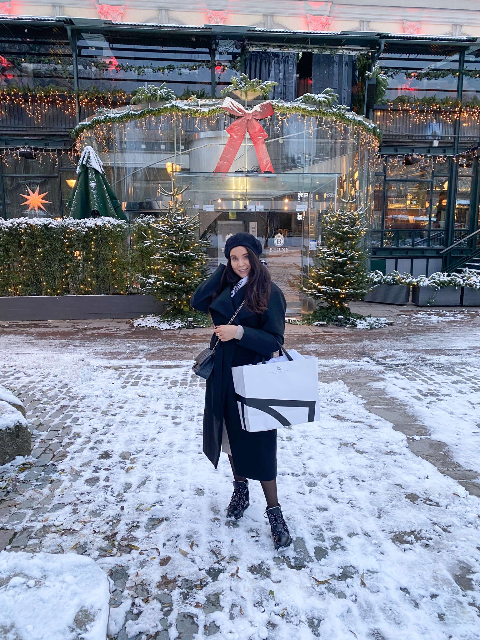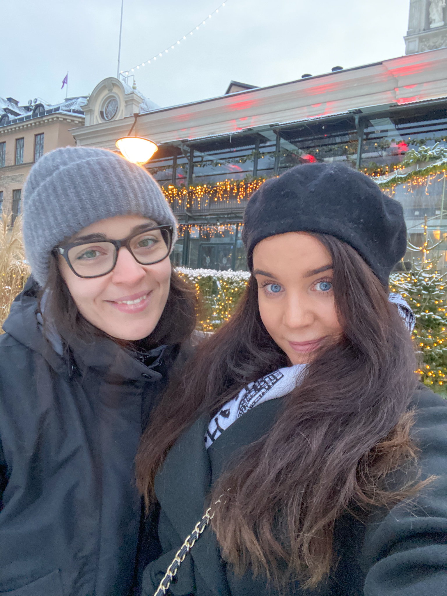 Idag när vi vaknade drack vi bara en kaffe här hemma innan vi gav oss ut på promenad. Vi mötte upp Livias vän och hennes pojkvän från Skåne och tillsammans tog vi oss en rejäl promenad. Efter halva prommisen blev det en fika på bästa Broms Karlaplan. Broms var mitt ”go to ställe” när jag cravade sashimi. Det var så otroligt längesedan jag var där. Efter fikat fortsatte vi att promenera längst med nybrogatan, förbi ”ny-gamla” saluhallen och vidare till NK. Här fick jag en sån fin present av min älskling. Passade också på att byta en julklapp som hon hade fått av mig. Råkade köpa en aldelss för liten Ralph Lauren mössa till henne, så typiskt mig.