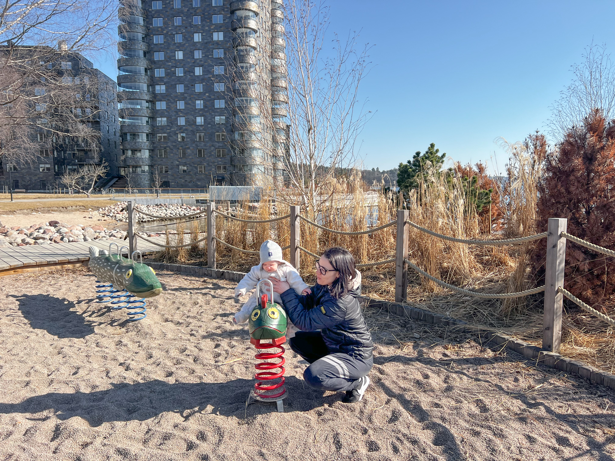 Livia jobbar hemma någon dag i veckan och det är så himla mysigt. Ibland kan jag få med henne på min och Leonards förmiddags-promenad och jag uppskattar det så mycket. Igår var en sådan dag. Vi promenerade längst med vattnet och in i naturreservatet och tillbaka stannade vi vid lekparken. Denna plats är magisk. Tänk att vi bor här. När Leonard blir större kommer vi att hänga här mycket, det vet jag!